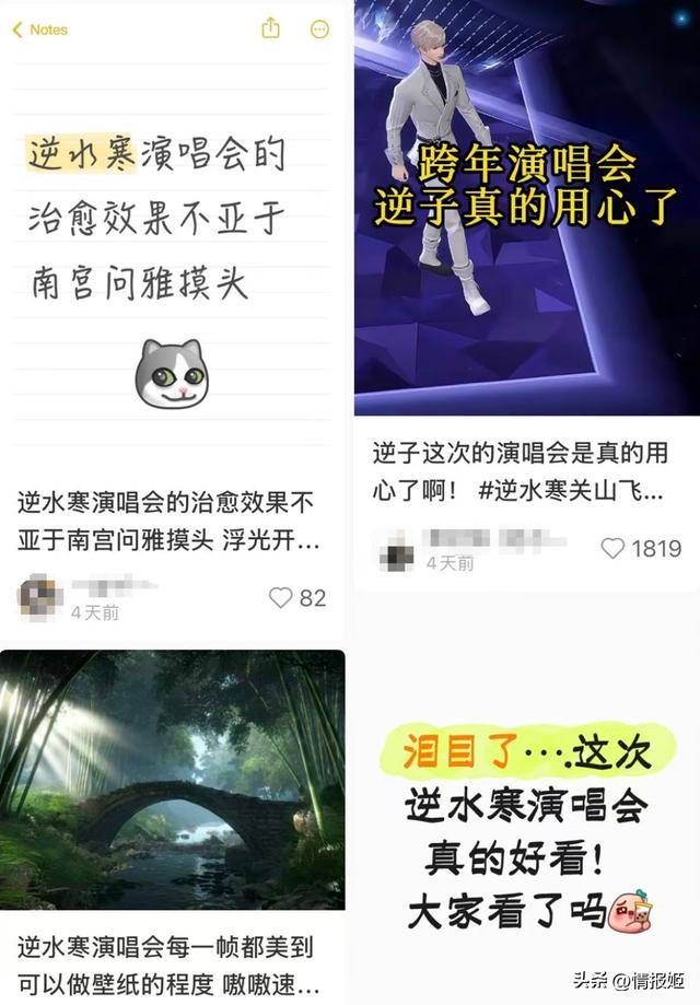 前段时间的材料片越关山PV《十三首恶:弈》,送出1亿张门票,可是总感觉还不敷,《逆水寒》手逛的演唱会阵容自始自终地奢华——